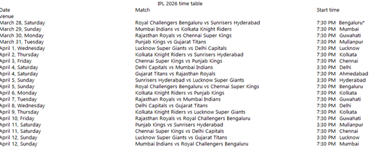 IPL 2026 Match Schedule – Full Match List